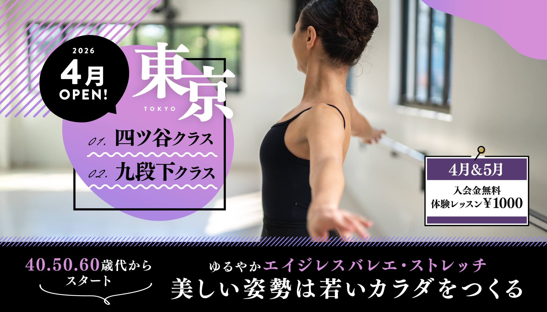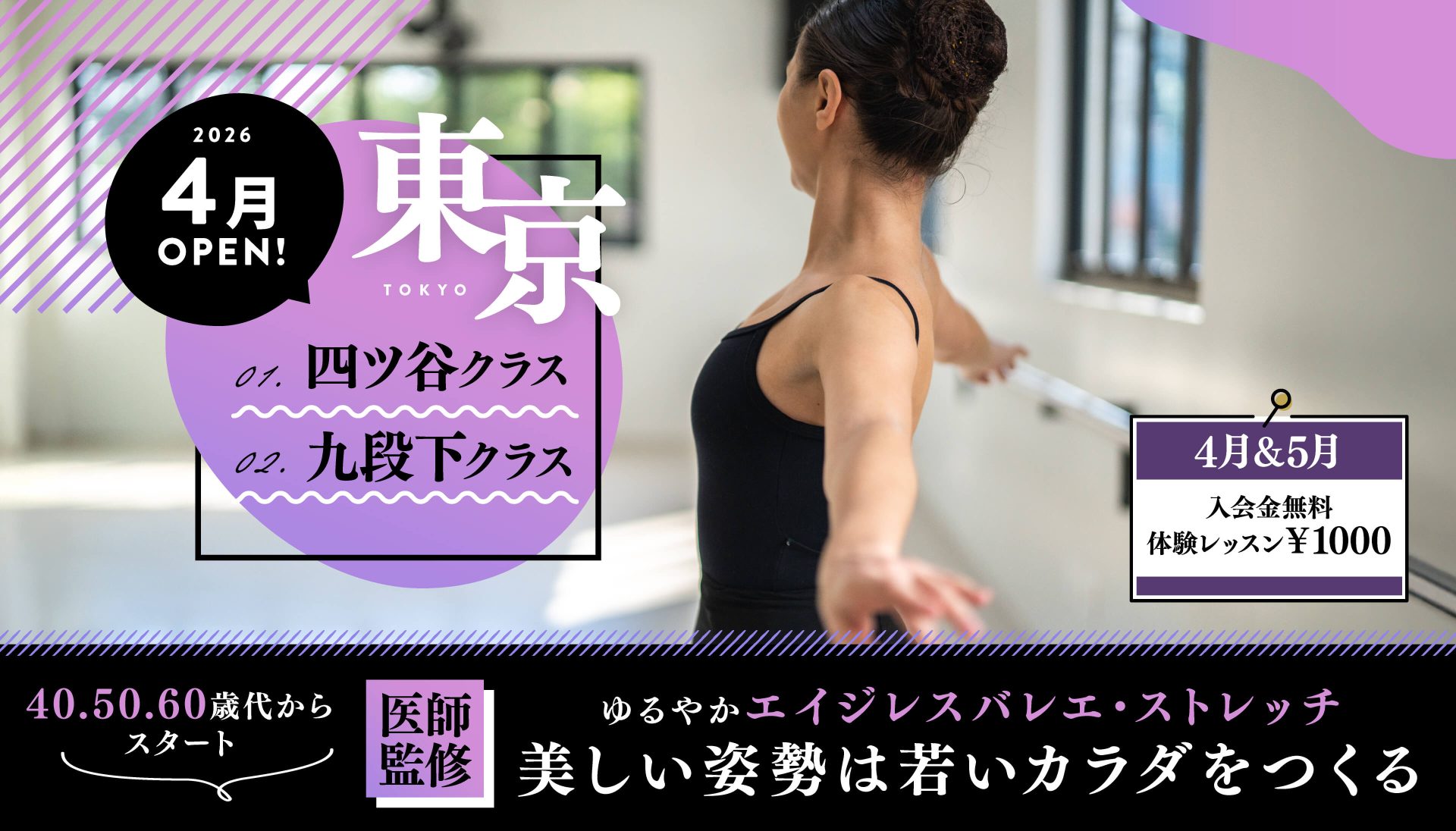 アクセスの良い都心・四ツ谷で、クラシック音楽に包まれながらの「美しい姿勢づくりレッスン」ゆるやかエイジレスバレエ・ストレッチ。